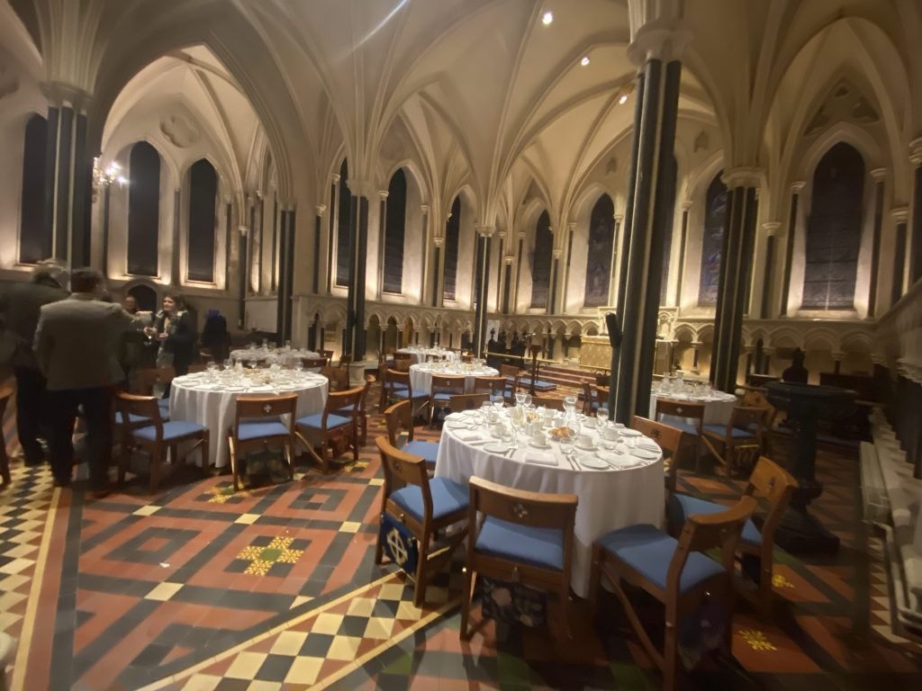Later, on the same day, Dean Morton hosted a drinks Reception in the Deanery, before ushering us into the Lady Chapel of St Patrick’s where we enjoyed a veritable feast catered superbly for us by With Taste, followed by a witty after dinner talk by Andrew Ware of Hayes and Finch on behalf of our sponsors, Rathbornes (the oldest candle makers in the world).